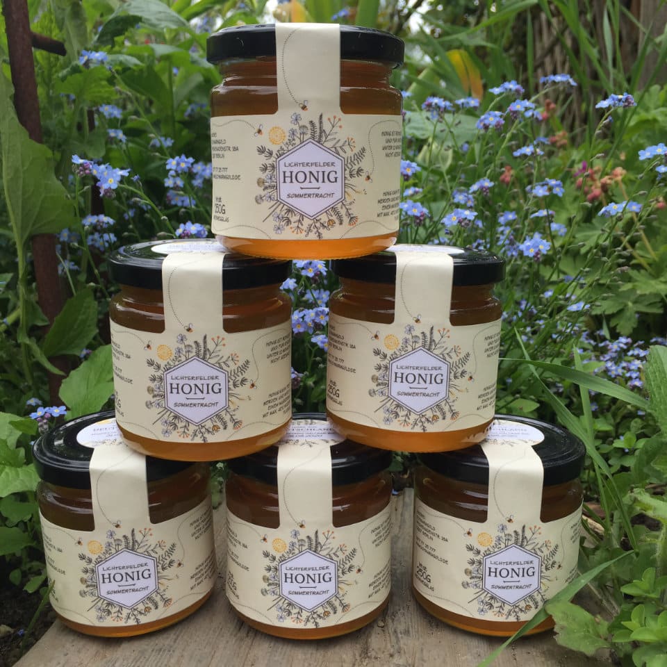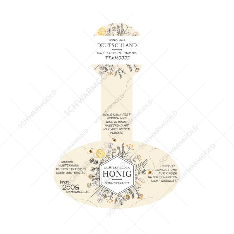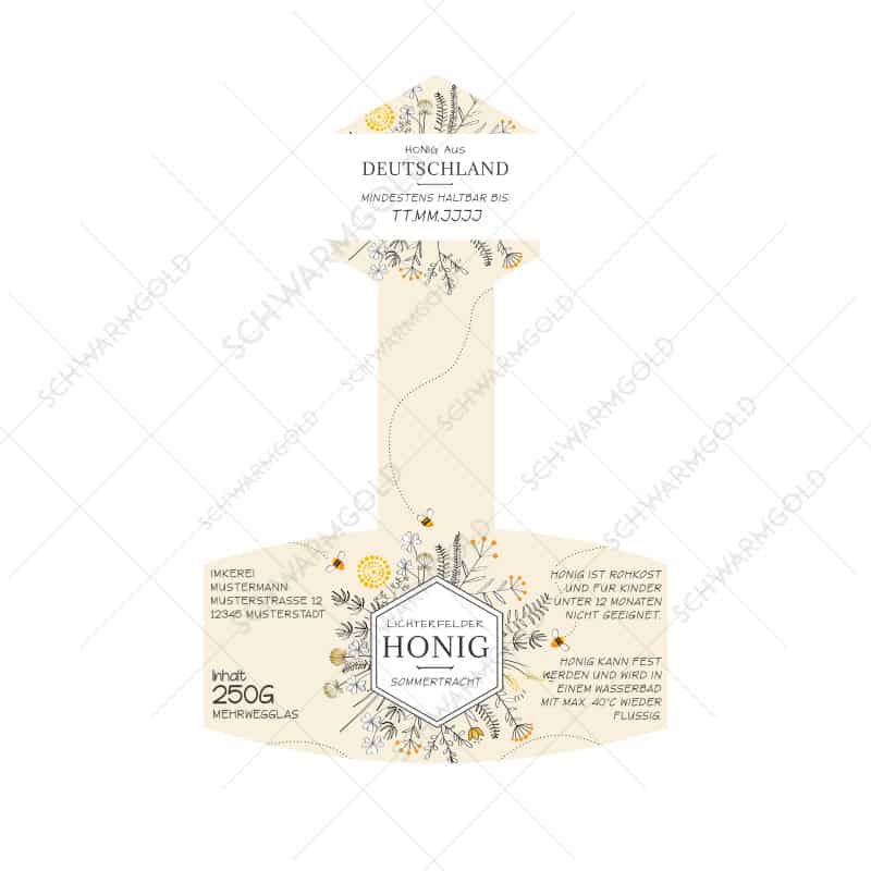 Das Design gibt es in allen Größen für TO-/DTO-Honiggläser (500g, 250g, 125g, 60g/50g, 40g/30g).